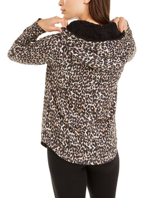 Ideology Women's Color Bold Leo Leopard Round Hem Hoodie Brown Size X-Large