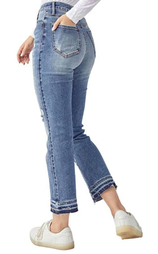 Risen - Side Shadow Seam Detail Slit Flare Jeans