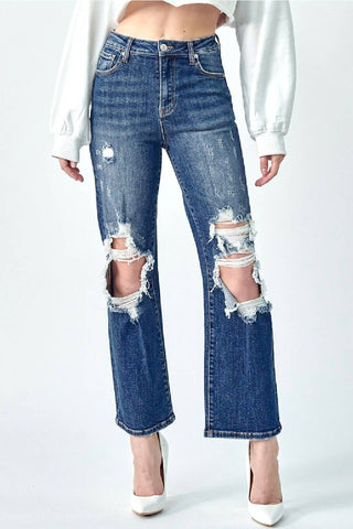 Risen - Tina High Rise Distressed Crop Straight Jeans