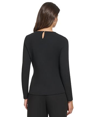 DKNY Women's Draped Crewneck Long Sleeve Knit Top Black Size Small