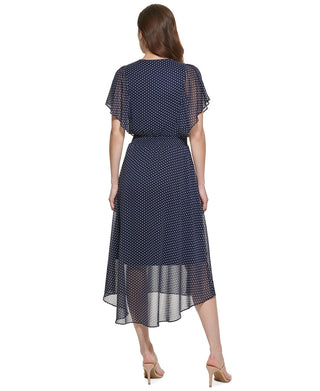 DKNY Women's Dot Print Pleated Empire Waist Midi Fit & Flare Dress Gray Size 10