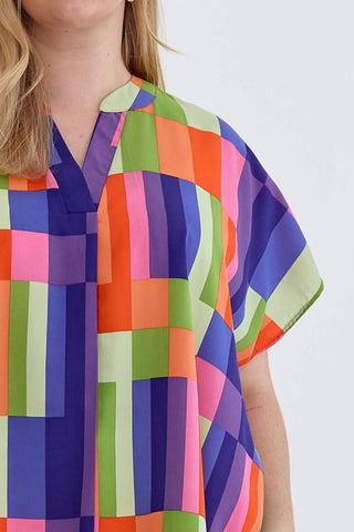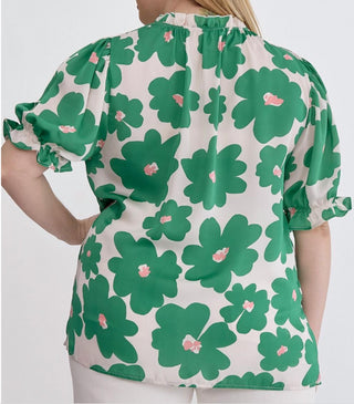 Entro - Poppy Floral Mock Neck Puff Sleeve Top