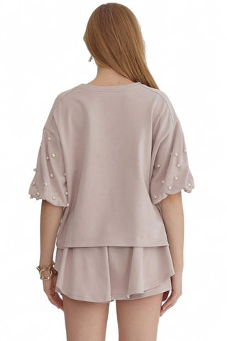 Entro - PEARL EMBELLISHED BUBBLE SLEEVE TOP