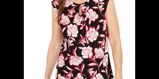 Kasper Womens Floral Print Keyhole Neck Tank Top Pink Size PS