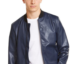 Alfani Men's Faux Leather Bomber Jacket Blue Size Small