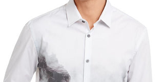 Alfani Men's Foggy Mountain Print Shirt Gray Size XX Large