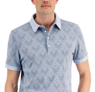 Alfani Men's Hall Geo Jacquard Polo Shirt Blue Size Large