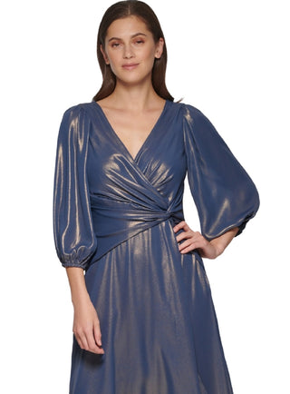 DKNY Women's Iridescent Twisted Balloon Sleeve Dress Blue Size 10