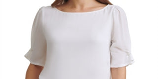 DKNY Women's Imitation Pearl Trim Elbow Sleeve Top White Size Medium