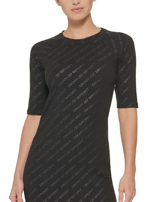 DKNY Women's Icon Logo Print Dress Black Size X-Large