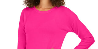 Ideology Women's Long Sleeve Jewel Neck Sweater Pink Size X-Large
