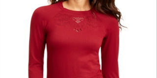 Ideology Women's Long Sleeve Jewel Neck Top Red Size Large