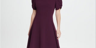 DKNY Women's Knot Puff Sleeve Fit Flare Dress Purple Size 10