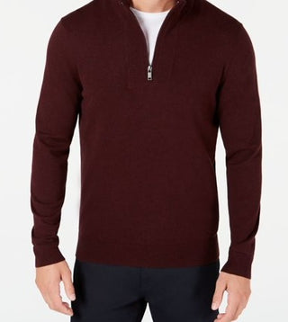 Alfani Men's Ottoman Quarter Zip Stretch Knit Sweater Wine Size X-Large
