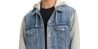 Levi's Men's Hybrid Hoodie Non Stretch Denim Trucker Jacket Blue Size Large