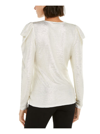 INC Women's Puff Sleeve Shine Party Top Gold Size L