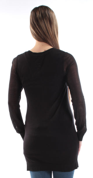 INC Women's Striped Long Sleeve Jewel Neck Tunic Sweater Black Size Medium