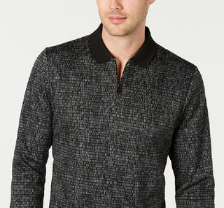Alfani Men's Patterned Long Sleeve Quarter Zip Casual Shirt Black Size Small