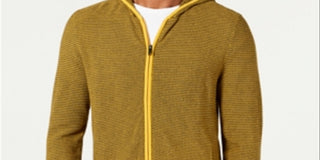 Alfani Men's Patterned Hooded Cotton Jacket Yellow Size X-Large