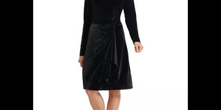 DKNY Women's Long Sleeve Jewel Neck Short Fit Flare Party Black Size 12