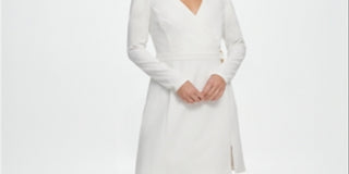 DKNY Women's Long Sleeve V Neck Short Sheath Dress White Size 16