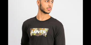 Levi's Men's Long-Sleeve Camo Logo T-Shirt Black Size Large
