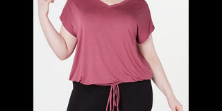 Ideology Women's Plus Drawstring-Hem V-Neck T-Shirt Purple Size 2X