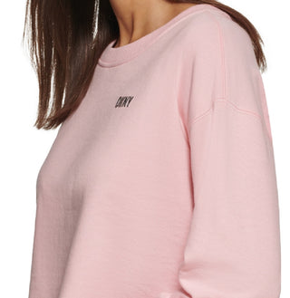 DKNY Women's Metallic Logo Cropped Sweatshirt Pink Size Small
