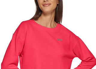 DKNY Women's Metallic Logo Cropped Sweatshirt Pink Size X-Large