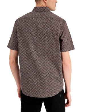 Alfani Men's Relaxed Fit Geometric Print Shirt Brown Size Large