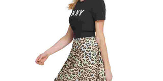 DKNY Women's Pleated Sleeve Fit & Flare Dress Black Size 12