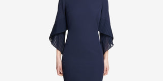 DKNY Women's Pleated Bell-Sleeve Sheath Dress Navy Size 14