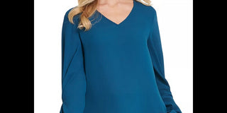 DKNY Women's Pleated-Sleeve Blouse Blue Size XX-Large