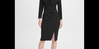 DKNY Women's Ponte Collared Side Ruche Sheath Dress Black Size -12