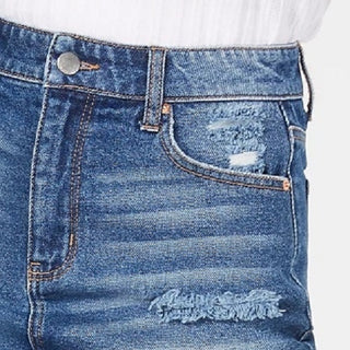 Tinseltown Juniors' Ripped Denim Mini Skirt Med Blue Size 15