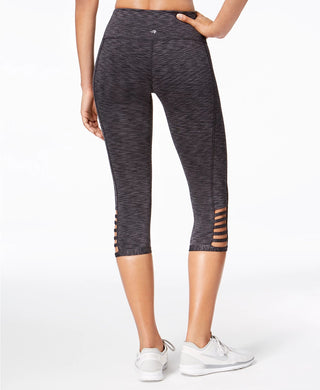 Ideology Women's Space-Dyed Cropped Cutout Leggings Black Size Extra Small