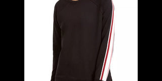 Ideology Women's Varsity Stripe French Terry Sweatshirt Black Size Small