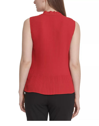 DKNY Women's Sleeveless Pleated Tie Neck Top Red Size X-Large