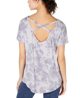 Ideology Women’s Tie Dyed Strappy Back High Low Hem T-Shirt Purple Size S