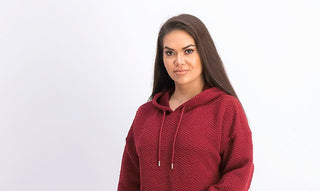 Ideology Women's Zippered Herringbone Long Sleeve Hoodie Sweater Red Size 1X