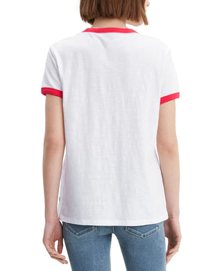 Levi's Women's Cotton Logo Ringer T-Shirt White Size X-Large