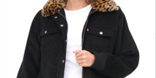 Levi's Women's faux Fur Collar Corduroy Trucker Bomber Jacket Black Size X-Large