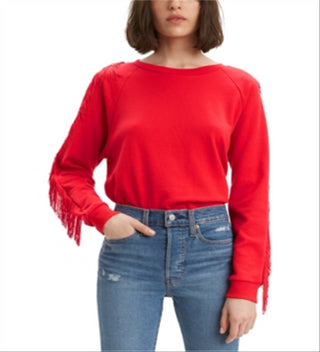Levi's Women's Fringed Crewneck Sweatshirt Red Size Large