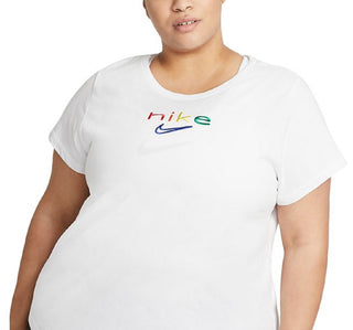 Nike Women's Dri Fit Rainbow Embroidered Logo T-Shirt White Size 2X