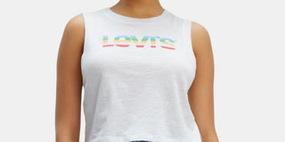 Levi's Women's Sleeveless Logo Print Cotton Cropped Top White Size Small
