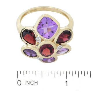 KALLATI 14K Gold 6.64ctw Multi Shape Amethyst, Garnet & Diamond Ring