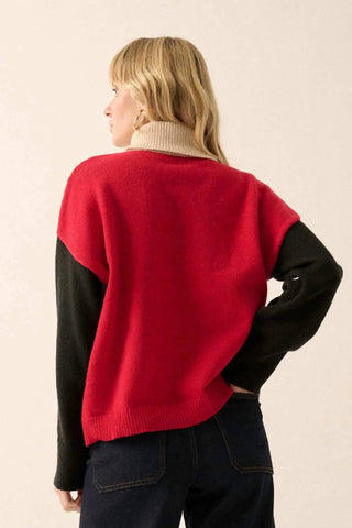 Promesa - Color Block Turtle Neck Cable Knit Sweater