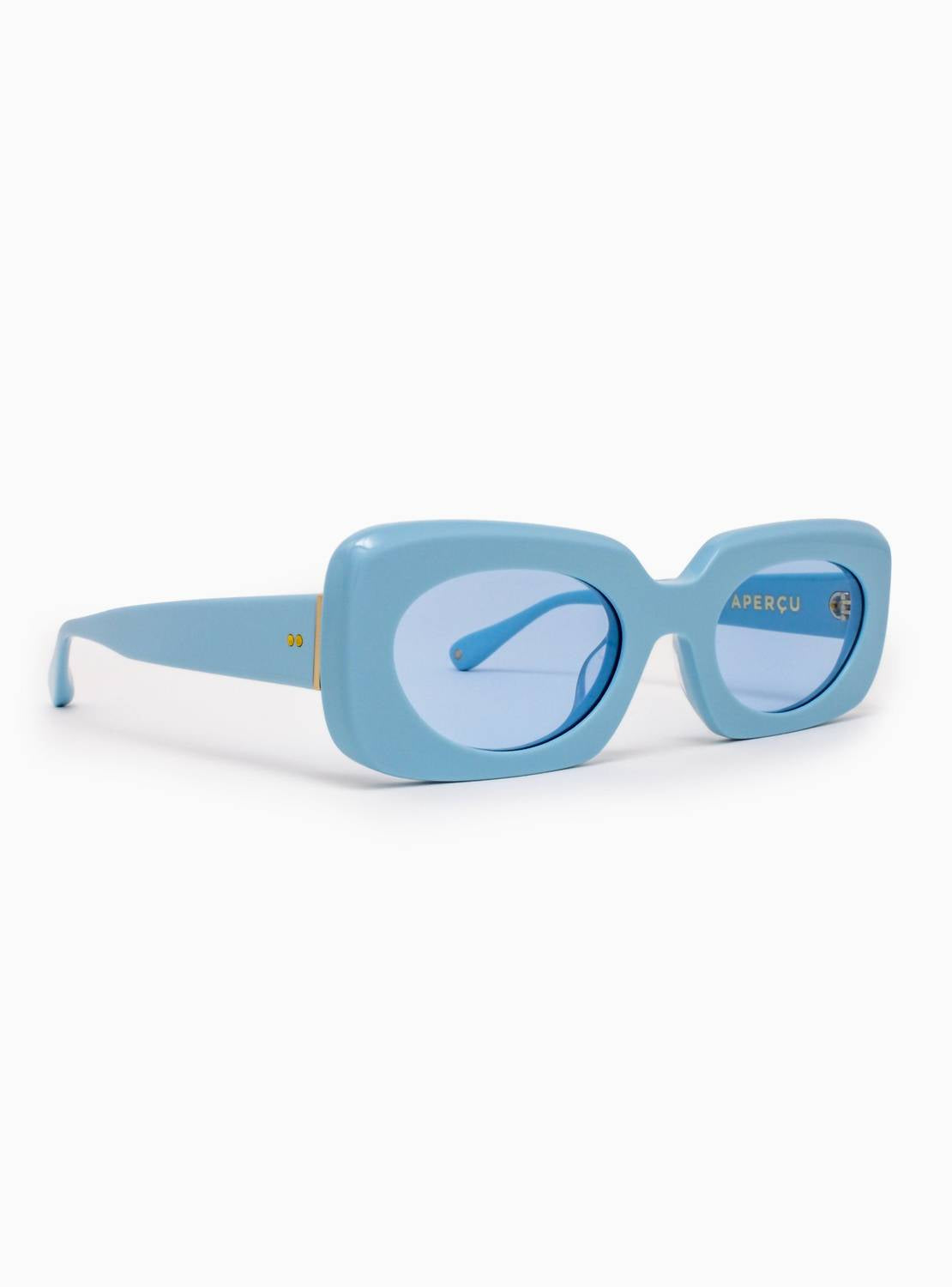 Make a statement and shield your eyes in these fashionable, yet practical sunglasses. Grab these adorable shades for your next vacation and elevate your accessory game. Discover the Alyssa 01 Sunglasses by Aperçu Eyewear, boasting a sky blue hue that perfectly captures their vintage-inspired silhouette with a modern twist. These sunglasses feature round and oval frames designed to flatter any face shape. Crafted with precision, they embody both timeless elegance and contemporary style. Made to enhance your eyewear collection with a splash of color.