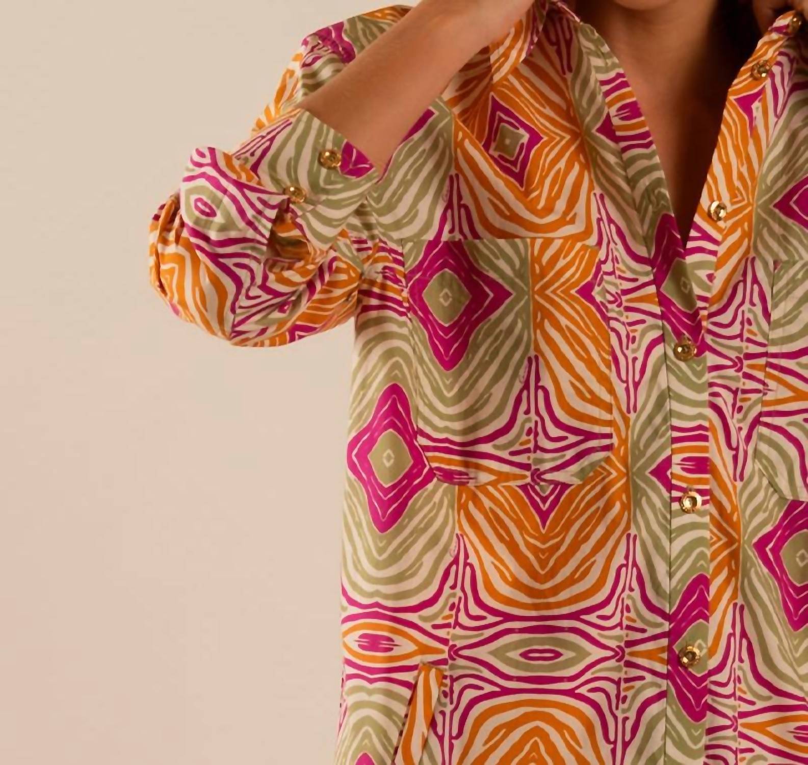 Introducing the Preslie Poplin Shirt Dress in a vibrant multicolor pattern, designed by Care Tucker for a perfect blend of style and comfort. This long-sleeve mini dress, crafted from 100% organic poplin cotton, features a collared button-up design and a high-low bottom hem, offering both structure and softness. Complete with functioning breast and waist pockets, it encapsulates the essence of versatile 90s fashion. Closure: Button Closure. Care: Machine Wash.