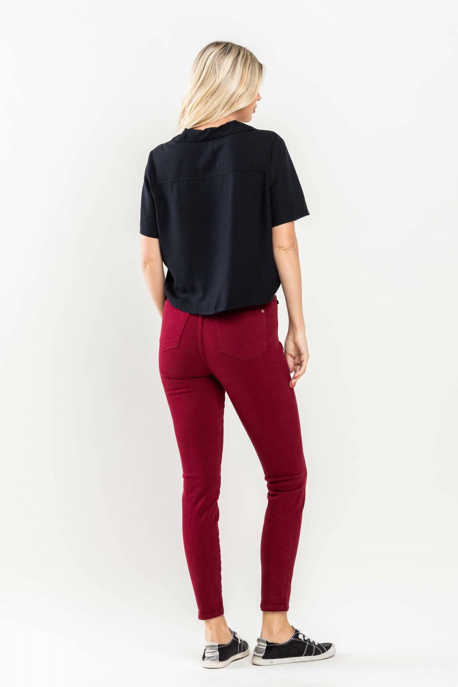 A skinny jean that is both flatering and comfortable. We love this style because it works great with boots, or without! 93% Cotton, 6% Polyester, 1% Spandex. High Waist Tummy Control Garment Dyed Skinny. FRONT RISE 11". INSEAM:29".
